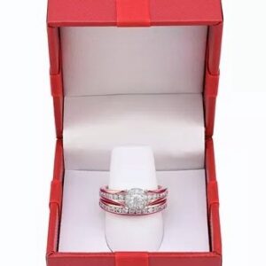 Round diamonds frame the independently certified, princess-cut diamond center of this spellbinding engagement ring. Ribbons of 14K rose gold and round diamonds flow along the band, bringing the total diamond weight to 3/4 carat. The center diamond is laser-inscribed with a unique Gemscribe? serial number for your peace of mind.